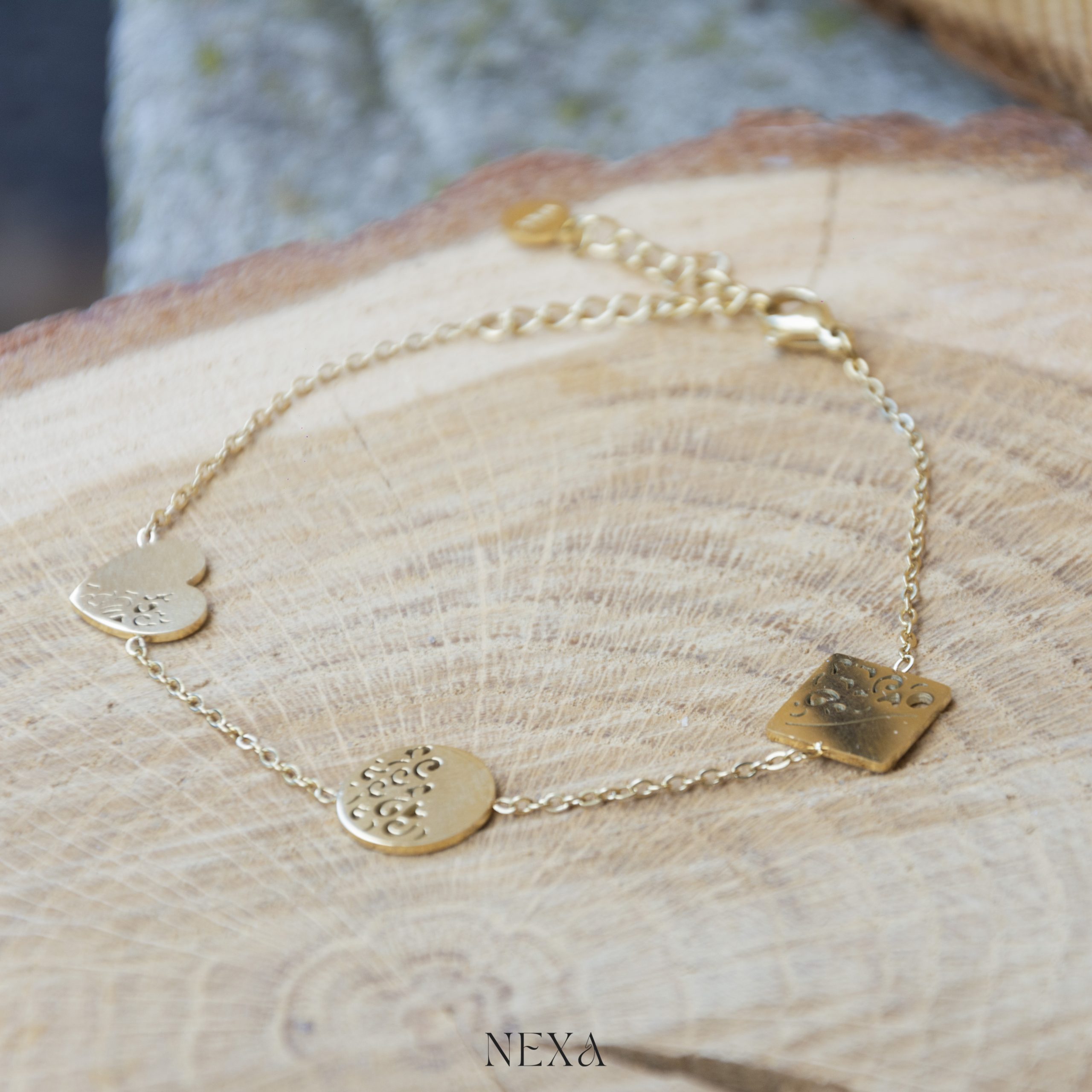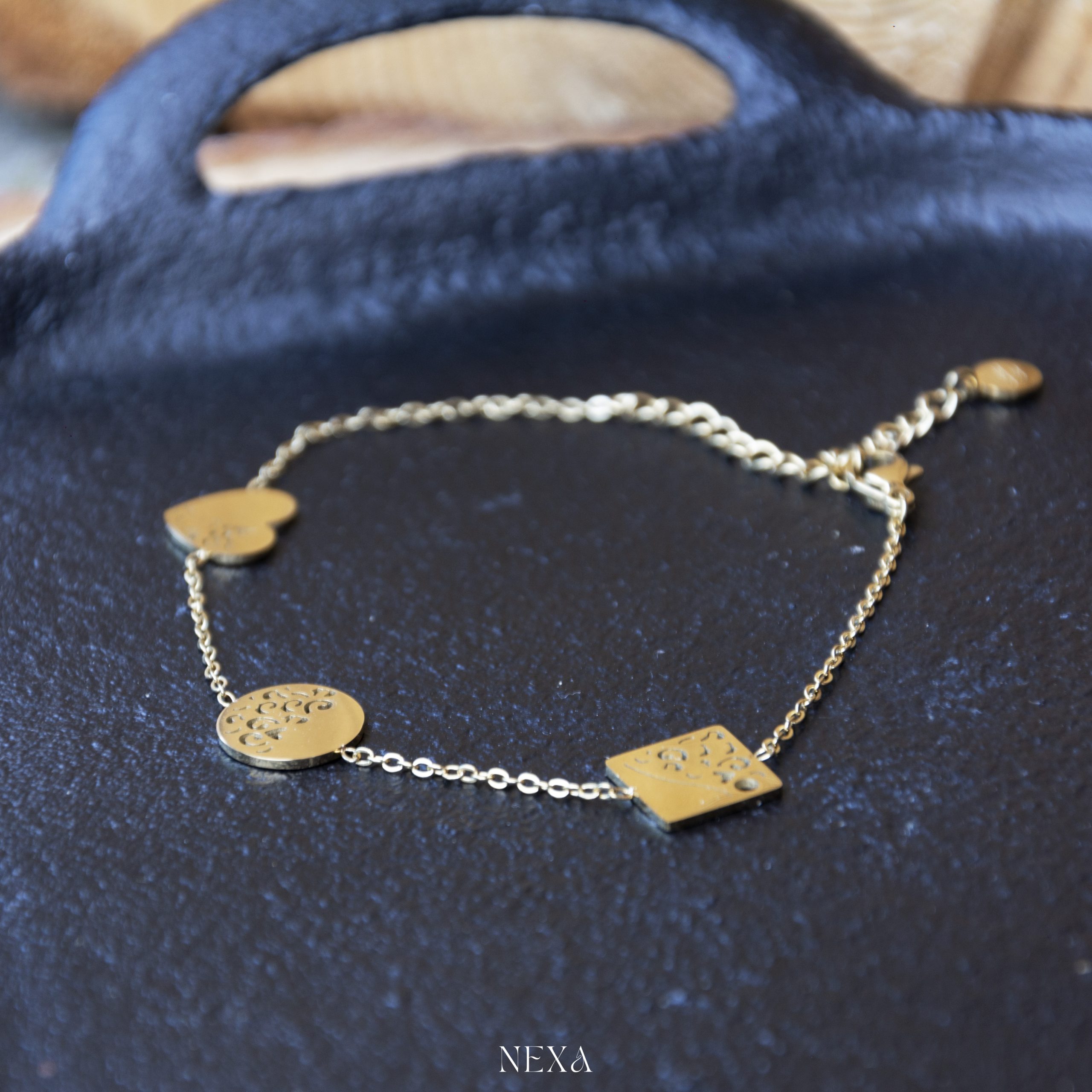 Delikatna bransoletka damska z geometrycznymi zawieszkami od NEXA Jewelry to propozycja dla kobiet ceniących nowoczesny design i subtelną biżuterię. Smukły łańcuszek oraz dekoracyjne elementy tworzą elegancki dodatek, który sprawdzi się zarówno na co dzień, jak i na wyjątkowe okazje.