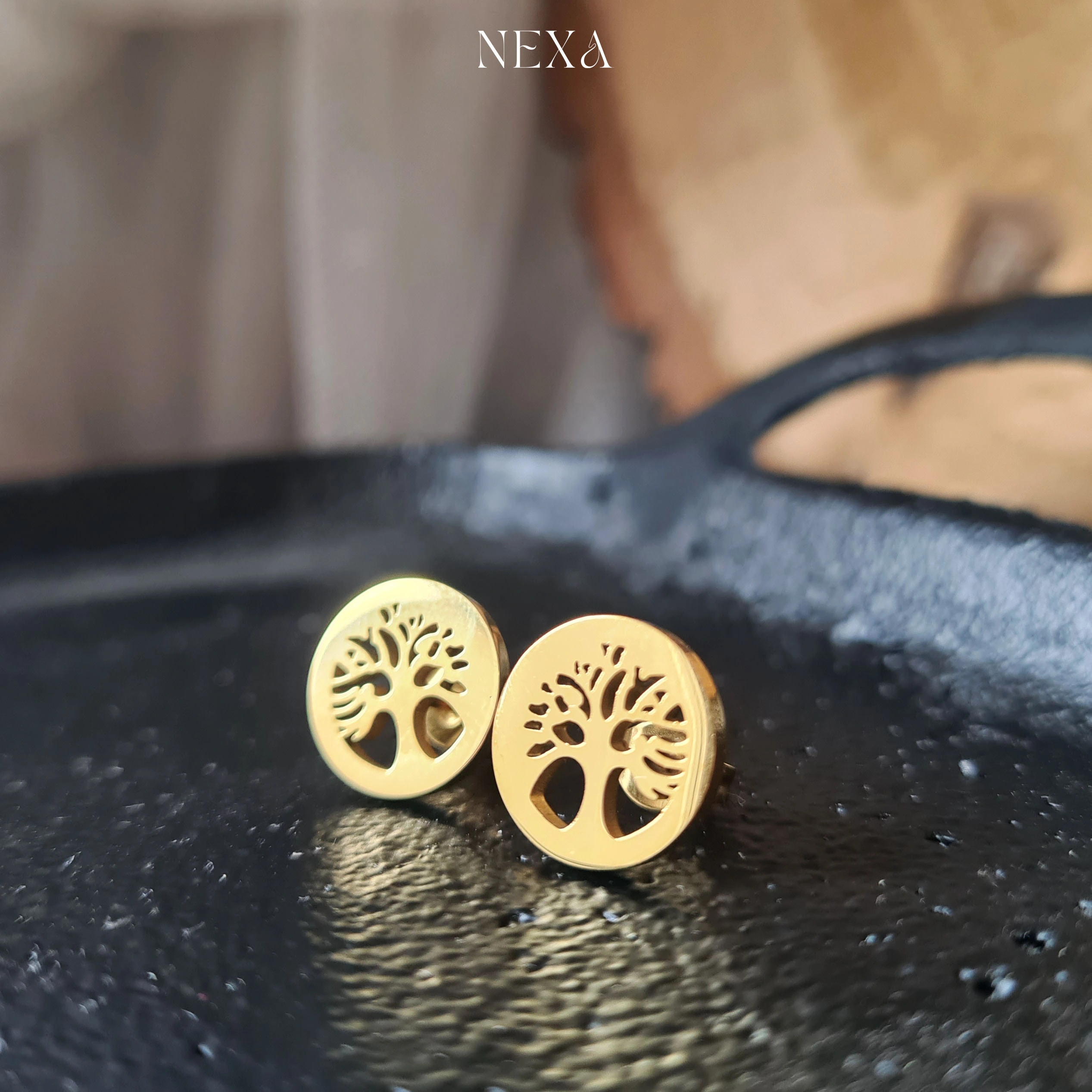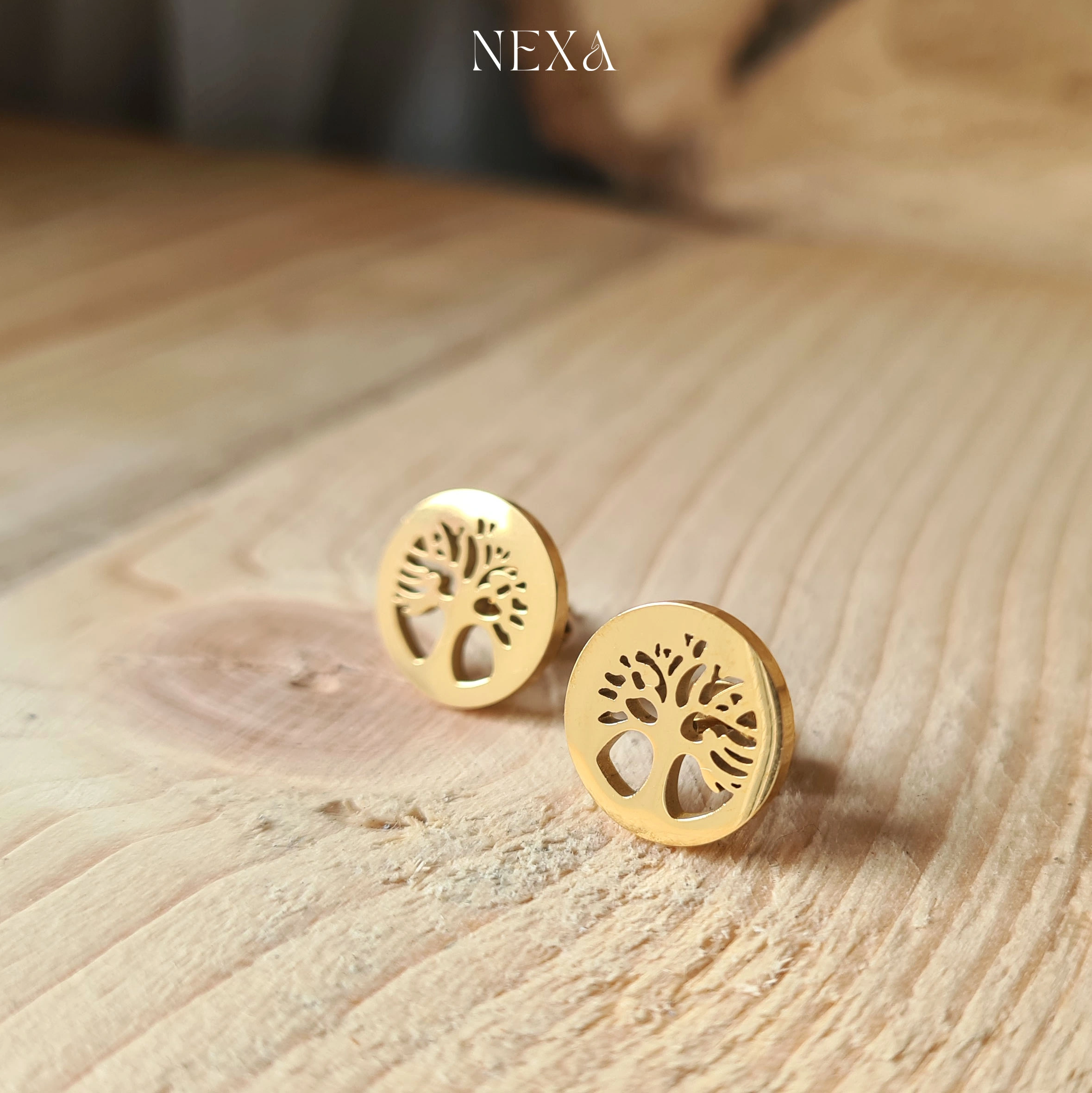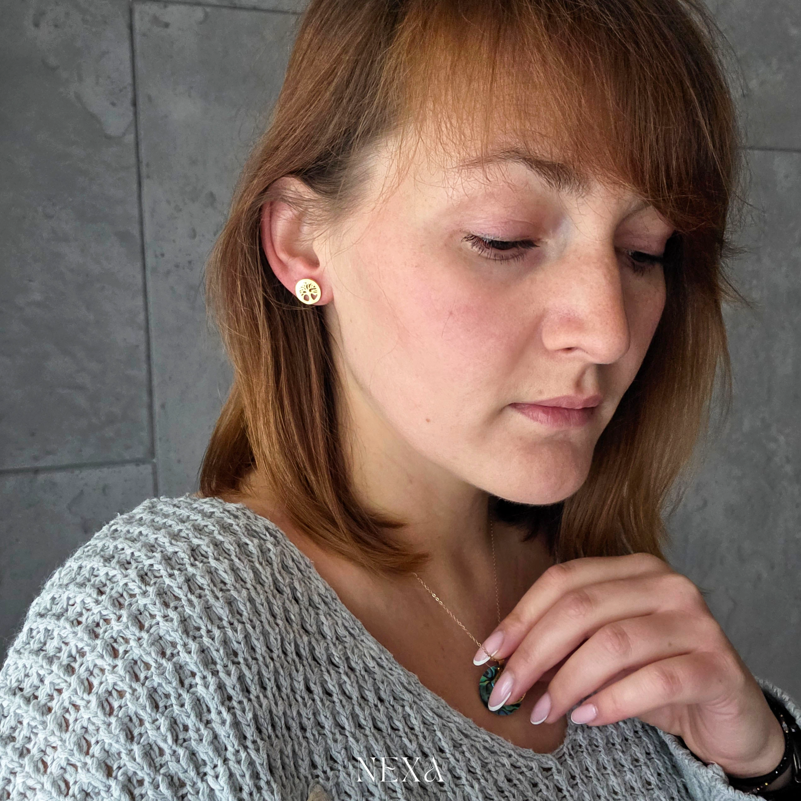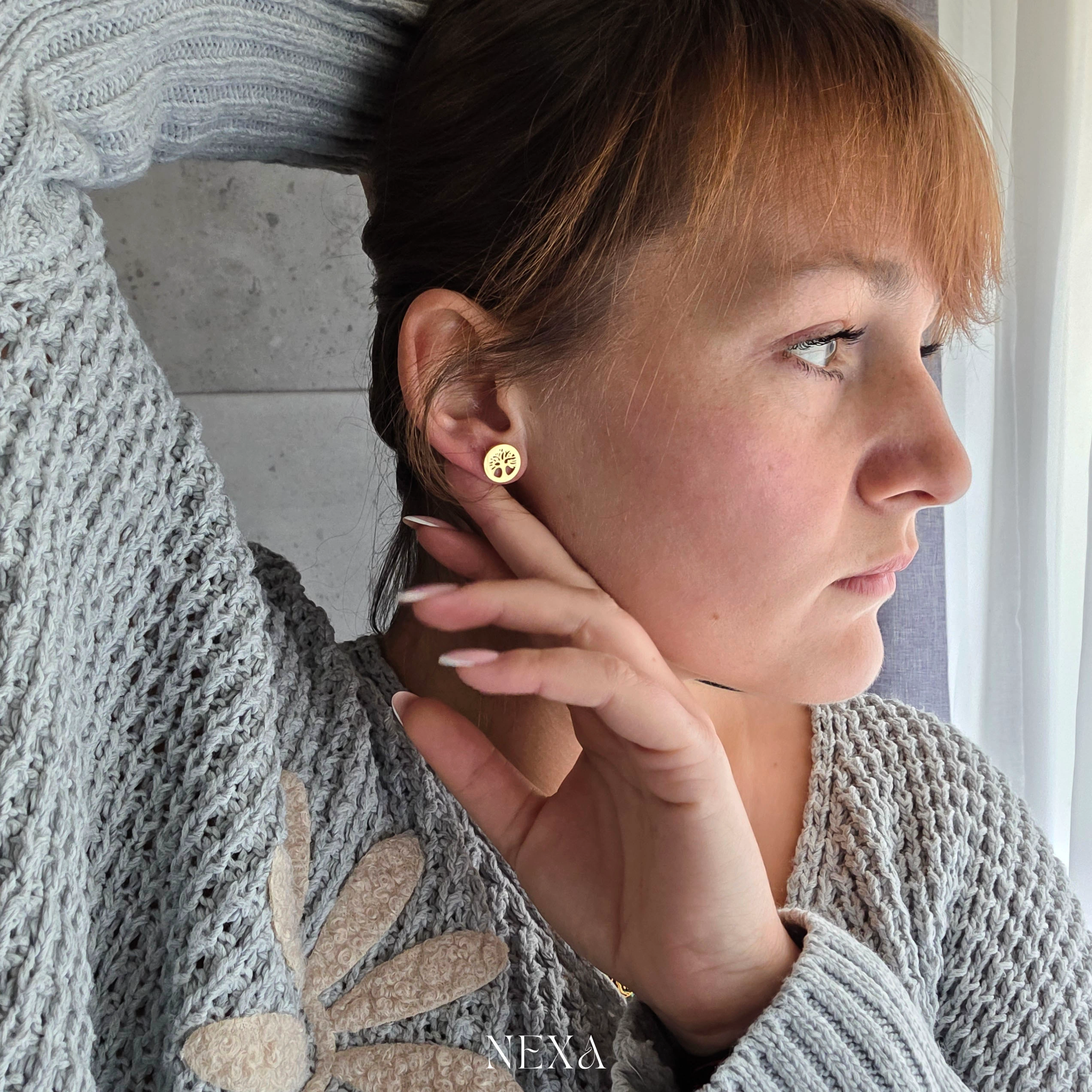 Kolczyki „Drzewo Życia” od NEXA Jewelry to eleganckie sztyfty wykonane z wysokiej jakości stali chirurgicznej 316L, co zapewnia odporność na zniszczenia oraz bezpieczne noszenie, nawet przy wrażliwej skórze — zgodnie z filozofią NEXA, która stawia na trwałość i komfort.